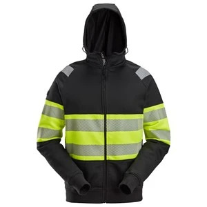 Varselhuvtröja med hellång dragkedja. Huvtröjan är tillverkad av ett mjukt polyester- och bomullstyg med borstad insida för daglig arbetskomfort. Jackan har segmenterat reflextryck, smutsområden, anpassningsbar huva, reflexband över den främre dragkedjan, två fickor med dragkedja och reflexdetaljer, samt märke på höger ärm. Den kommer också med ribbstickning i hals, ärmslut och nederkant.